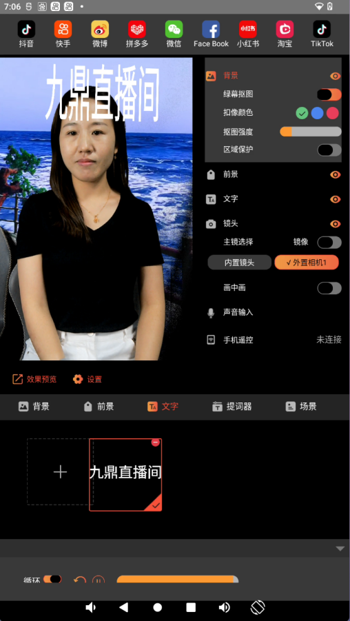 導(dǎo)播軟件界面 推流到抖音后界面