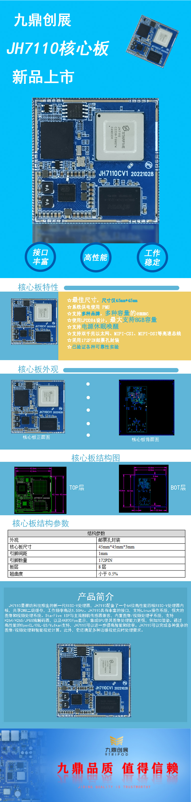 JH7110核心板具有以下特性: