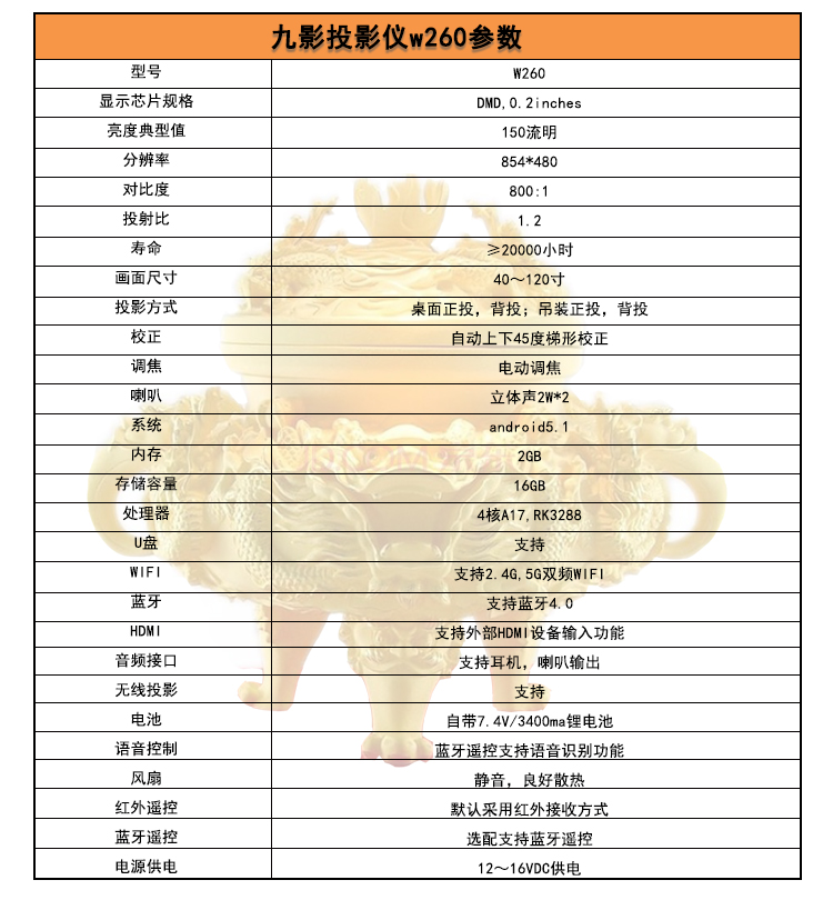 九影W260技術(shù)參數(shù):
